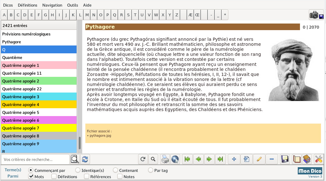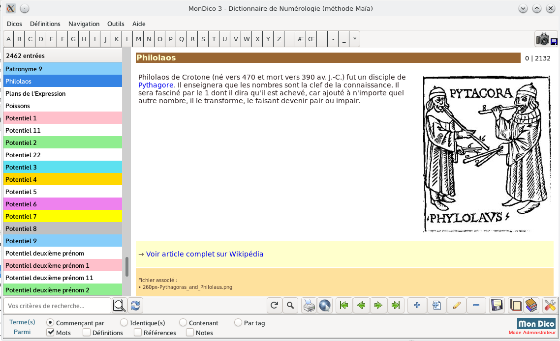 Da 0 alla lettera Z, più di 2400 voci, integrando le nostre ultime ricerche (Numeri di forza, Numero standard, Aspetti tra numeri...). Sviluppi questo database unico delle sue analisi e conoscenze.