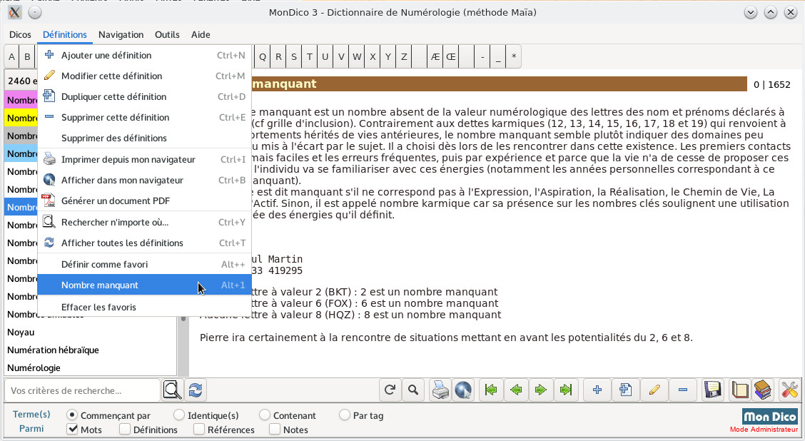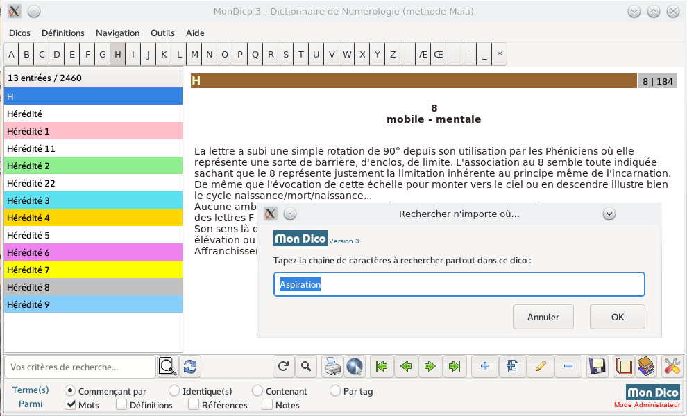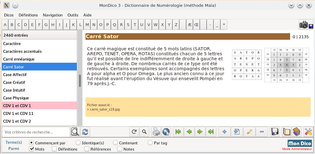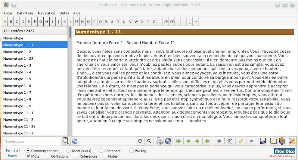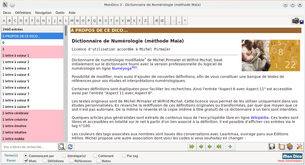 Da 0 alla lettera Z, più di 2400 voci, integrando le nostre ultime ricerche (Numeri di forza, Numero standard, Aspetti tra numeri...). Sviluppi questo database unico delle sue analisi e conoscenze.